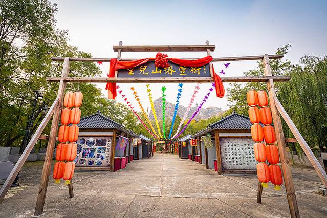 十一月的天气微凉,山上的一些树叶已经开始微微发黄,走过这条美食街便可攀登上山了,虽然望儿山并不高,但是在周边平原地形的衬托下,还是显得十分伟岸的。