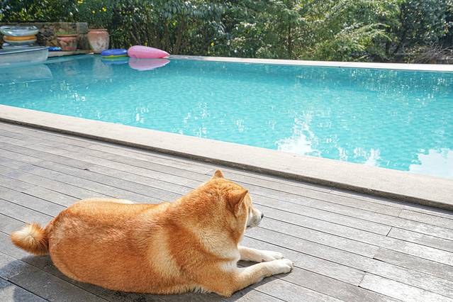 还没走到前台就发现院子里的小柴犬“旺财”,一点也不怕陌生人,悠闲的躺在泳池边晒太阳。后来听老板说,旺财两个月就到民宿里了,是店里的“老员工”,很多客人都喜欢来这里撸狗。