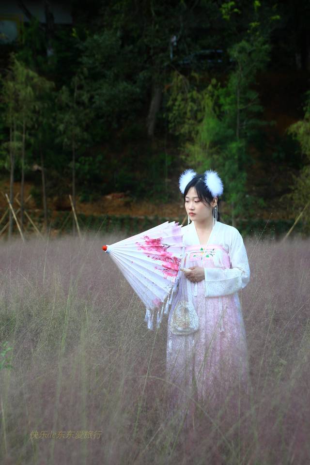 粉色的乱子草花特别小,远处看起来花海并不很起眼。但是,女孩子穿着汉服或婚纱走进花海里拍人像还是不错的。下面是我拍的几张照片,摄影师拍的人像肯定比我拍的更漂亮更好看了。