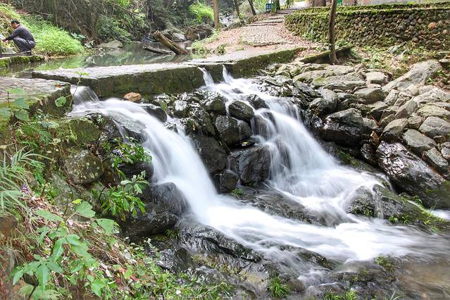 从泮坑长廊进去,沿着小溪往里走,就可以看到溪边新修建的仿古枫林栈道。游客可以轻轻松松在溪边漫步,在阴凉的栈道上欣赏泮坑的自然风光,累了还可以在路边坐下来歇息。