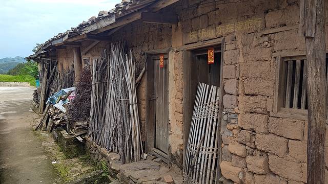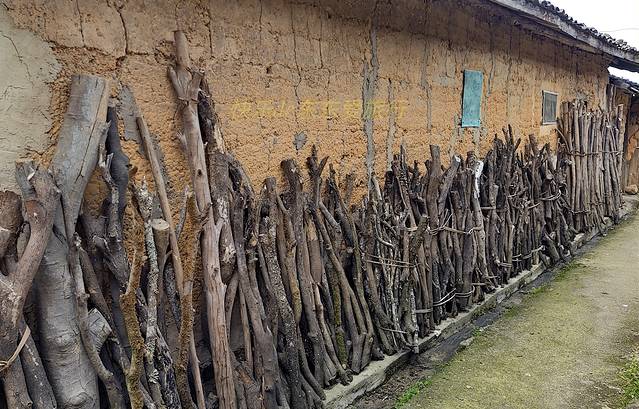 围龙屋屋檐下的“檐头上”堆放了一捆捆大小不一的木柴,我询问了围龙屋的主人,现在大部分人都搬出去了。平时还有约三十人常住,春节大家回来后则十分热闹。住在围龙屋内的大多数家庭还烧柴做饭,少数家庭烧煤气,或者两者结合。