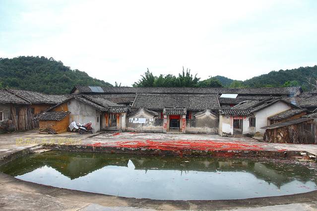 再看围龙屋门前的半月形风水池塘,宽度仅比堂屋稍大一点,半径不足10米,与三围半的围龙屋比起来,简直可以忽略不计。整座围龙屋共42家220多人,人均池塘不足1平方米。而且水深也不深,平均水深不足1米。从风水学的角度看,住在围龙屋的人自然就发不起来了。