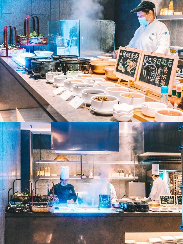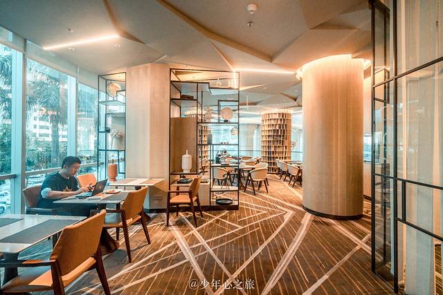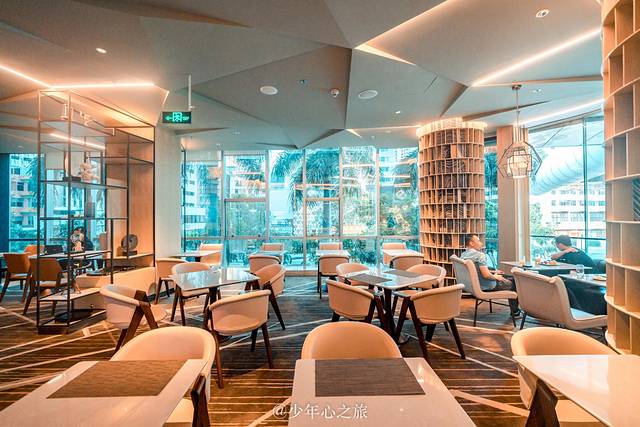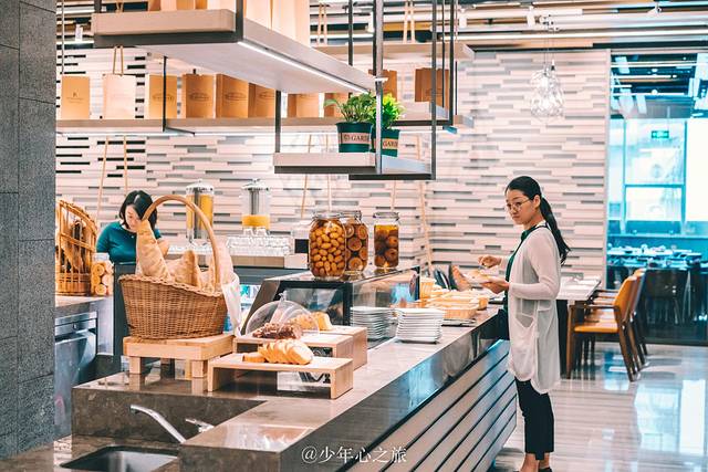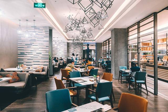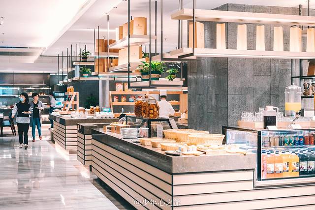 美好的一天,从二楼的燃餐厅开始,早餐是舌尖穿“粤”之旅,在被美食征服之前,注意力已经被这里艺术与优雅的氛围所吸引,典雅的浅灰色,空中悬挂的镂空金属吊灯,不规则的横切条纹墙壁,将欧式简约时尚的风格演绎得淋漓尽致,环境在某评网上更是名列前茅。