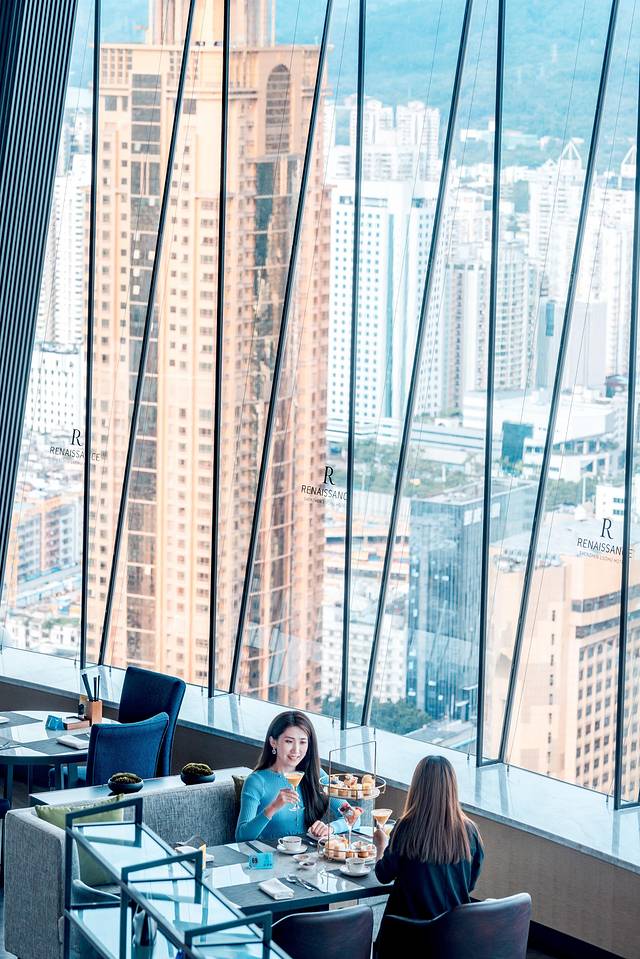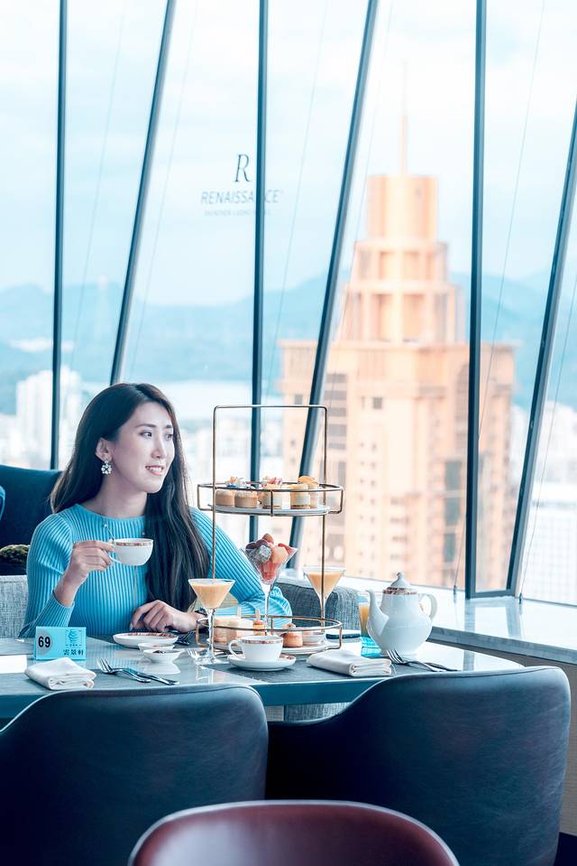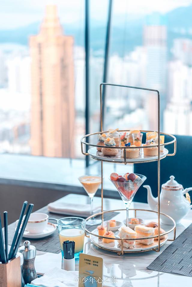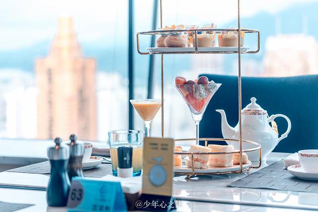 当然美景也离不开美食,一份精致的下午茶,配上这深港美景,仿佛置身于云端之上,国贸大厦等标志性地标建筑近在咫尺,更令人惊喜的是,餐厅还在缓缓地旋转,无需走动,美景就会送到你眼前。