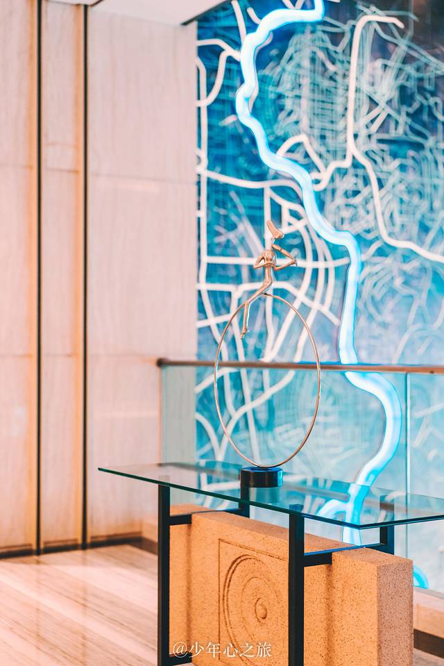 虽然来深圳已经很多次了,但一直没有机会好好的逛一逛罗湖,一直都是匆匆而过。罗湖是深圳最先崛起的地方,这里很多建筑都极具年代感,见证了深圳的腾飞与变迁。人们喜欢来罗湖,大概是这里潜藏着很多人儿时的回忆,也正因为如此,罗湖的生活气息非常的浓郁。穿越喧哗的人群,步入酒店的大堂,整个世界瞬间安静下来,前台12米高的“深圳河”艺术作品一扫旅途来时的疲惫,每个角落新颖的设计和趣意的摆设将我们引入艺术殿堂。