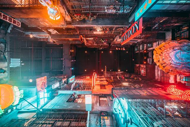 不得不说这个地方确实很适合拍照,外边是大白天的现代化世界,而里边却是光怪陆离,充满赛博朋克的第三空间,感觉穿越到几十年前,又感觉有些地方过于超前科幻,给人一种时空错乱的幻觉。