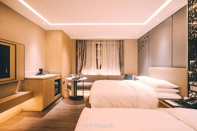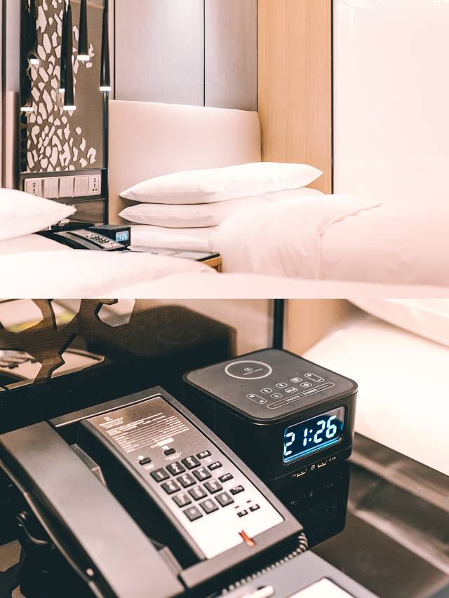 似乎人生到了一定的阶段,就开始做减法,生活上开始尝试断舍离,空间则向往简洁舒心的风格,摆脱繁琐的空间占用,客房的装饰理念深得我心,简约而不简单,多余的物品抛弃,保留的物品追求质量和品质,无论是沙发还是床品,亦或是枕边的蓝牙闹钟,都给人实实在在的质感,为夜晚的高质量睡眠增添了更多的保障。