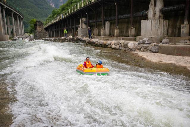 整个漂流的时间大概在1个半小时左右,漂流水流比较急,2个人坐一个漂流船的话能压得住,值得表扬的是景区工作人员,安全措施非常到位,沿途都会有工作人员开车跟着,对旅客的安危非常负责。