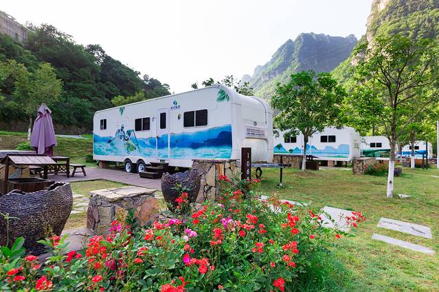 首先让我眼前一亮的就是整个营地的布置,背景是青山,鲜花、绿水环绕,在这里度假还是蛮享受的,环境真的好,就连早上都不忍心睡懒觉,想坐在我们的房车前呼吸新鲜空气了。