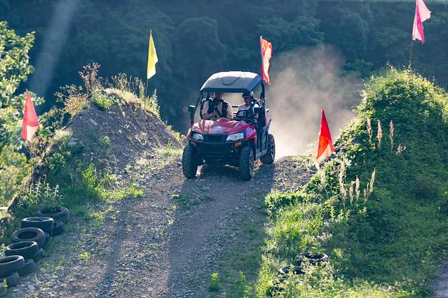 除了真人CS特别爽和过瘾以外,越野车真的不能错过,我们到朝天吼每次都要来开这个越野车,这个车子操作起来跟我们日常开的车没什么区别,启动加速后,随着飘扬在空中的灰尘扬起,我们正式进入到越野状态,土路、路障、高低坡等,让我们驾驶起来非常的刺激,肾上腺素飙升,绝对的释放压力。