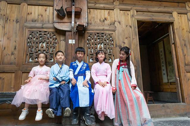 毕竟是历史文化的研学体验,来这里研学的小朋友可以换上古装,坐在学堂里之乎者也一番,感受一下古时孩子们学习的场景,看他们一个个认真的背着手背书的模样,好可爱哦,这样的设置也是让学生感知王昭君的聪明才智,学习昭君从小勤学好问的品质,从而达到培养学生爱祖国、爱人民的情感。