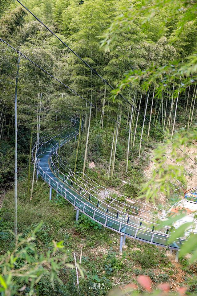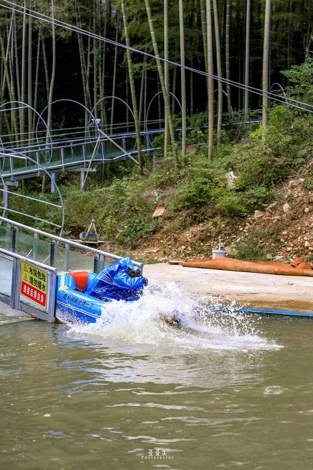 1公里长的透明玻璃滑道穿插与竹海中,享受和朋友们一起乘坐橡胶艇穿梭于绿荫竹海的美妙瞬间。360°的玻璃滑道在竹海间迂回曲折、起伏不断,刹那间,一股强烈的失重感冲上大脑。整个过程都是难以想象的惊险,刺激与有趣。甚至在结束时还意犹未尽的舍不得离开。买票的时候就会给一套雨衣,穿上基本可以避免湿身,脸就。。。哈哈你们懂的。