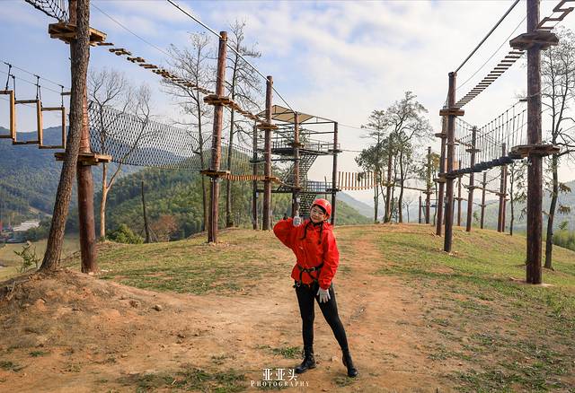 来这里体验一次”空中飞人”吧!戴 上高 空溜索的护具,飞旋在山腰间,跨越竹林,湖泊。望着脚下一片茂密的竹海,这才真正是感受到了脚下生风的感觉。