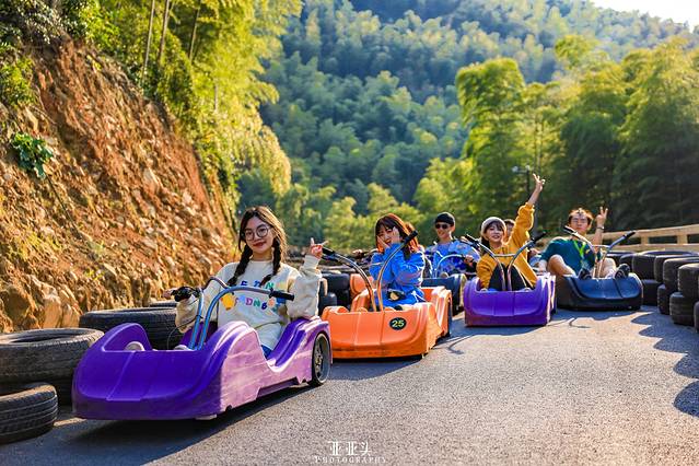 特地采用 新西兰 引进的luge滑板车,这个项目有三条赛道,分别是竹海线,森谷线和天际线。全程长达3.2公里,在越斜的陡坡上速度越快。如果你想要轻缓一些,只要轻捏手刹,速度就会降低,自由掌控速度,操作十分简单。来这里体验速度与激情的融合,听因急速而在耳边呼啸的山风,感受转过弯道后下一秒的柳暗花明。