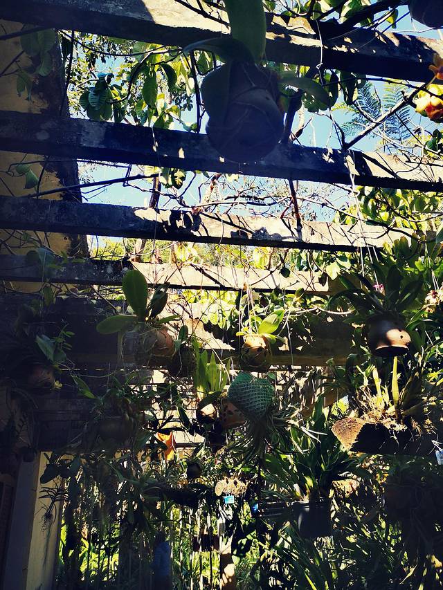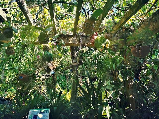 植物园的荫生植物区,最美的就是这波空中植物,抬头看,绝对是【以蓝天为纸,以植物入画】的最美天花板。