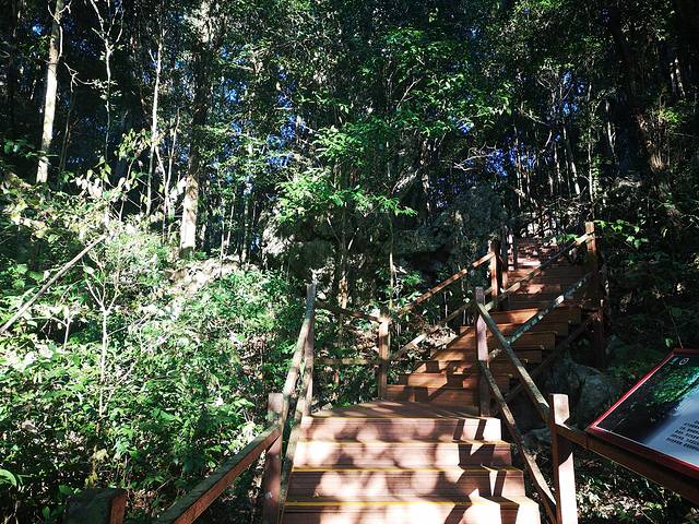 绿石林的特点是下面是石林,上面是雨林,需要边爬山边在热带雨林穿行,坐车到站点后,游玩全程3公里,大约一小时。