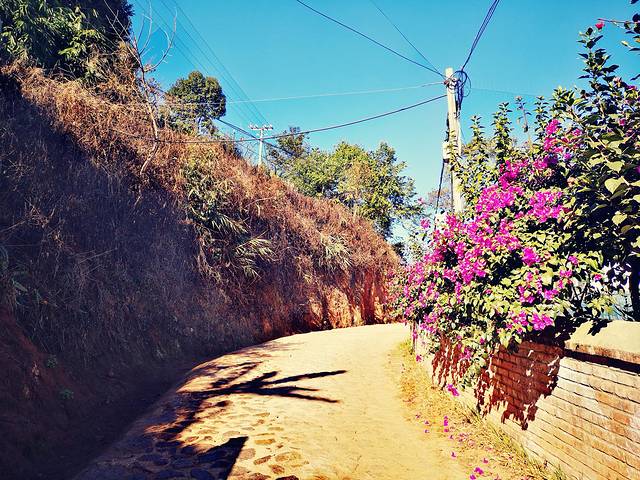 从半坡老寨返程,我没有走来时的小路,选择了导航给的路线,没想到沿途风景依然很惊喜,不由得赞叹,真是蓝天白云叶子花,南糯山人的诗酒茶。