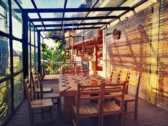 这家客栈老板非科班出身,房子没有图纸,直接带着工人在现场沟通盖的,软装自己布置,有如图所示的成果,还是让人很惊叹,感慨少数民族的朋友不仅能歌善舞,在审美和艺术上也极具天赋。