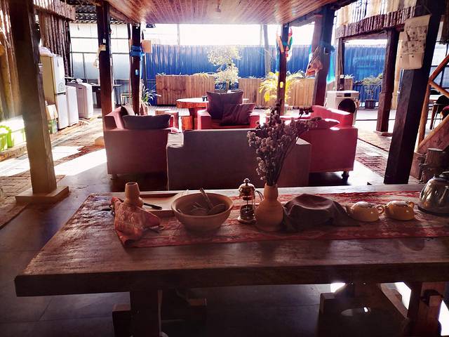 定这家民宿时,其实线上的评分并不高,因为电话沟通时觉得客栈老板比较有亲和力而且能搭个顺风车,沟通过程也比较顺畅,就决定来。到客栈之后,着实有点意外,他家院子整得真不错,有餐厅,还有自己的茶堂。