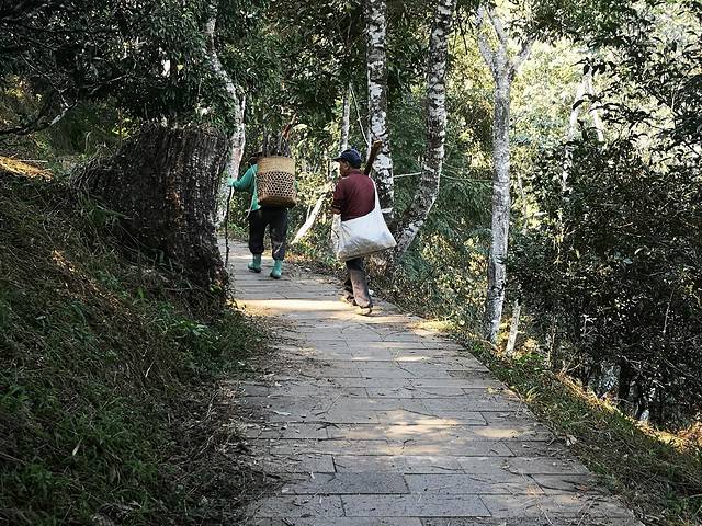 去看茶王,半坡老寨是必经之路,到达寨门,算是正式到了半坡老寨的地界,但离茶王树还有很长的路要走,先横穿寨子,再走一段盘山路才是此行的终点。