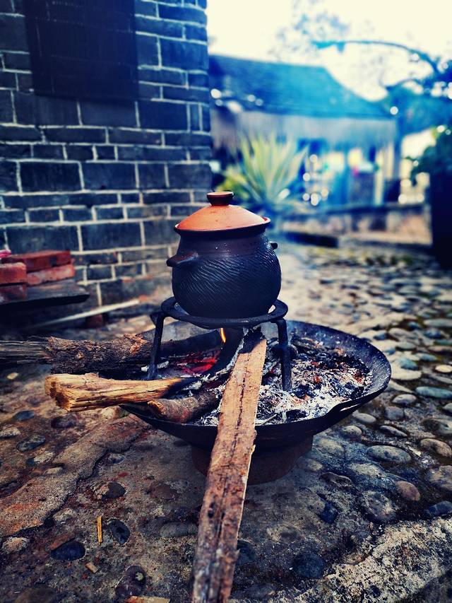 村寨的早晨,空气新鲜,静悄悄的很美,就这么散散步吸吸氧也是很棒的体验,等我回到民宿,院子里已经点上柴火,炖了一只鸡,是为中午的客人准备的,新的一天又开始了。
