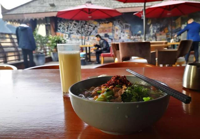 因为客人不算多,酒店的自助早餐改成定量套餐,15块钱一碗米线,俩豆沙包,一杯豆浆吃的暖暖的,此时气温开始上升,阳光正好,适合出门溜达啦。