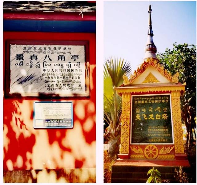 正好第二天逛曼听公园时,在园中看到过曼飞龙白塔(清)和景真八角亭(南宋)的复制品,由此了解这两座建筑是版纳现存比较珍贵的文物古迹。