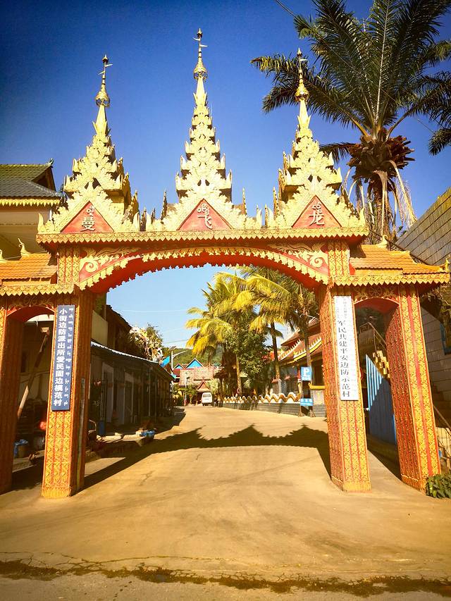 坐车大概一个小时,快中午时候到达曼飞龙村,下车的地方就是公路边上,刚下来还觉得有点荒郊野外的既视感,结果走几步就看到曼飞龙村的寨门,十分气派。