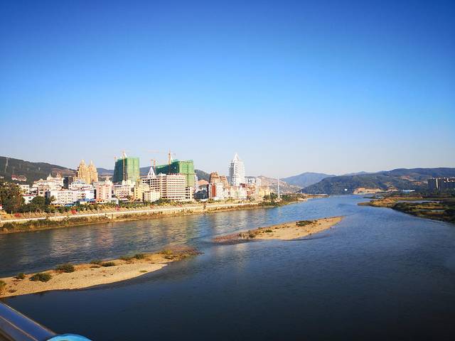 西双版纳大桥是景洪的地标之一,是告庄和市区之间的必经之路,桥上人车分流,设计很人性化,全长600米,走这一段刚好欣赏澜沧江江岸风光,在桥上看岸边一座座高楼大厦构成的景洪城市天际线,感慨国内城市的建设总是相似的,然而不是所有的城市都有景洪这样的蓝天,也不是所有的城市的冬天都这么温暖,大概这就是为啥西双版纳聚集了那么多的“北方候鸟”,一个边境小城房价不知不觉都过万了。