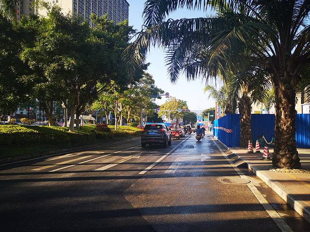 勐海路是景洪的主干道之一,道路两边的行道树是高大的棕榈植物,非常有南国风情。