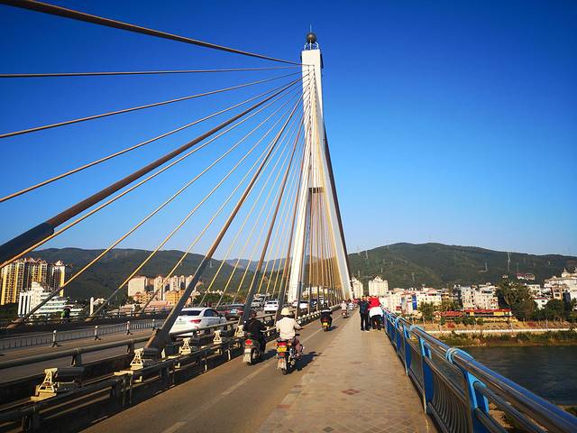 这座桥是一座新桥,2000年建成的,还有一座老桥在它的北边叫澜沧江大桥,现在还在使用。