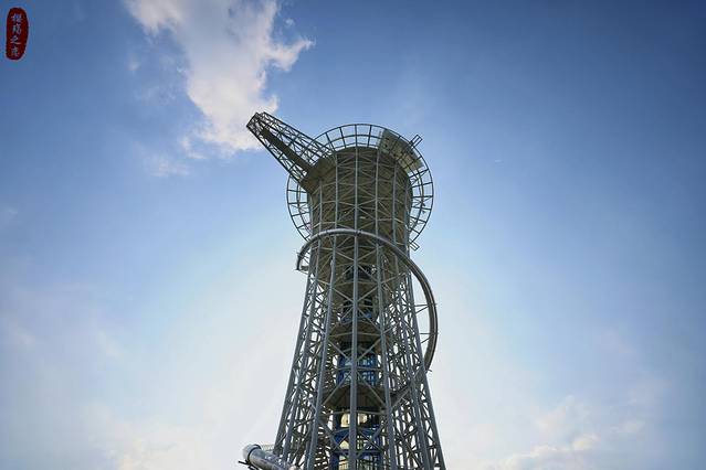 天际滑梯全长68米,恰似银龙一般从塔顶盘旋而下,体验者进入其中,有种穿越时空的梦幻感,绝对是回味无穷。