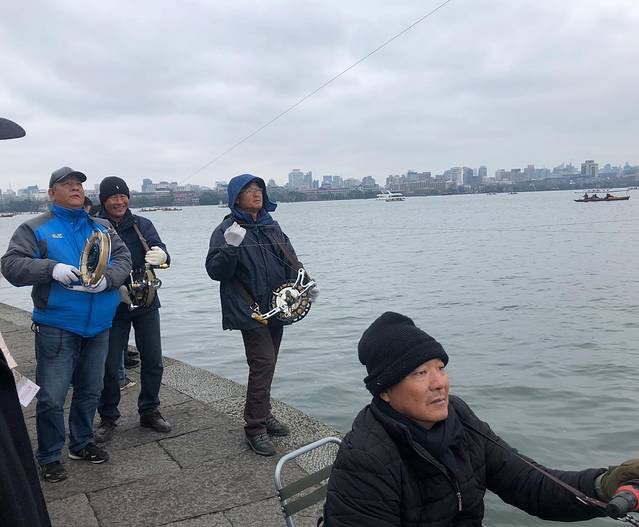 在西湖边上看见冷风中放风筝的大爷们,我给起的绰号西湖F4风风队,真不知道大叔们家里都啥背景,装备齐全,大爷们都好生猛,据说是玩风筝的骨灰级玩家,玩了20多年,跟我说放风筝不但锻炼身体,还能治疗颈椎病笑哭。旁边的游人说大爷你再放高一点,大爷说不敢再放高了,上次都挂住飞机了,民航的人都来找他了……捂脸小蜂,风筝大爷好有趣,真是羡慕他们惬意的小生活。