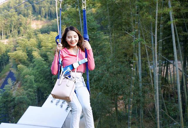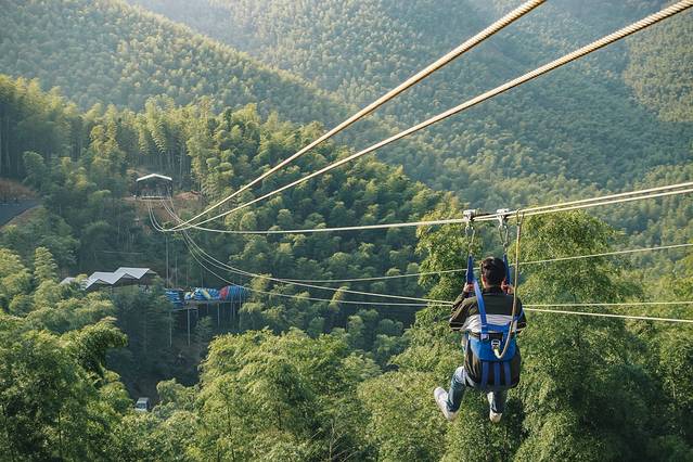 很多景区都有高空滑索,但是这里的有点不一样,滑索落差不大,速度也比较平缓,滑行的过程中感觉竹海在脚下簌簌作响,看着脚下的风景,心中非常愉悦,到达滑索的另一端,只会感叹这个过程实在太短暂了。