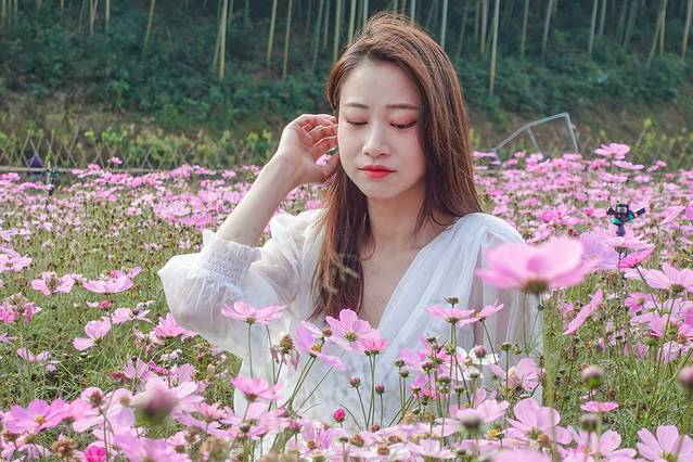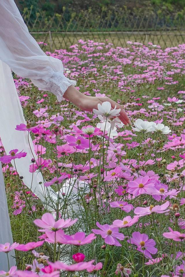 进入景区,映入眼帘的便是格桑花海,这个时候的格桑花开的正盛,穿一袭白裙行走在花海中,裙摆在风中摇曳生姿,这一幕实在太美了~
