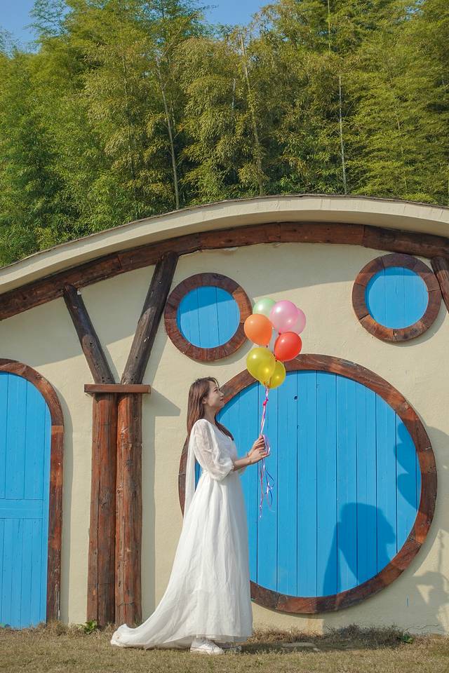 再往上走就能看到霍比特小村,坐在房子上面拍照非常的出片,仿佛行走在童话世界里。