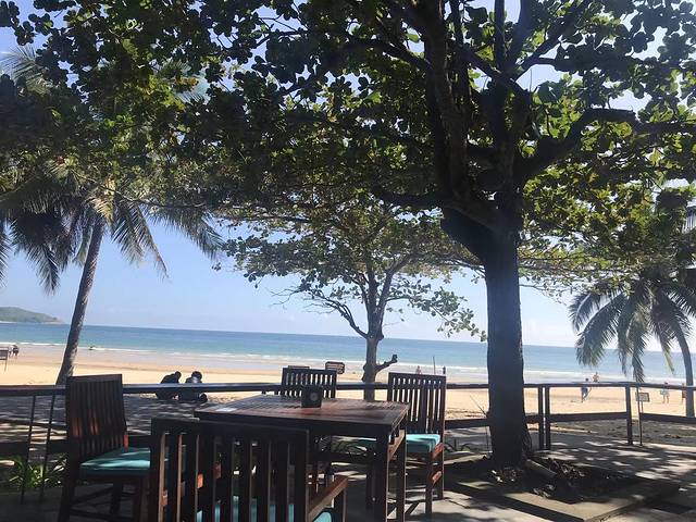 潜完水,去海边吃了午饭,屈指可数的几家小店铺,坐在户外桌边,被沙滩上的热气烘烤着,下家伙闹了情绪,困意来袭,没怎么吃东西,这儿的饭菜很坑,价格贵,量少,不好吃,一个椰子可以售价25,是市区两倍多,俩人随便就一百多的午饭。你可以选择走上岛几步的饭店,千万别再沙滩边吃饭,踩坑。
