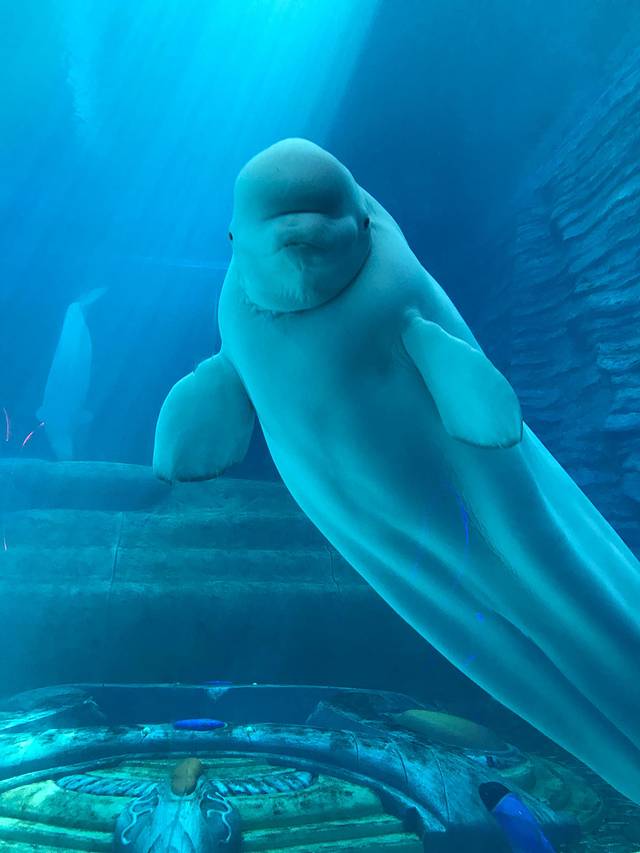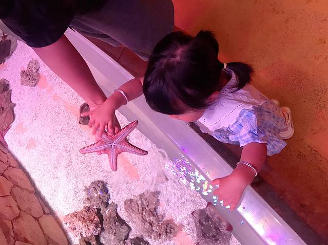 里面还专门摆放了开放的水箱,几种海星任游客亲密接触。大白鲸安迪真的很喜人,你跟它打招呼,它会游过来盯着你,不停的用脑到顶玻璃,想要出来跟你亲密接触。这种跟深海生物密切互动的感觉,太棒了!