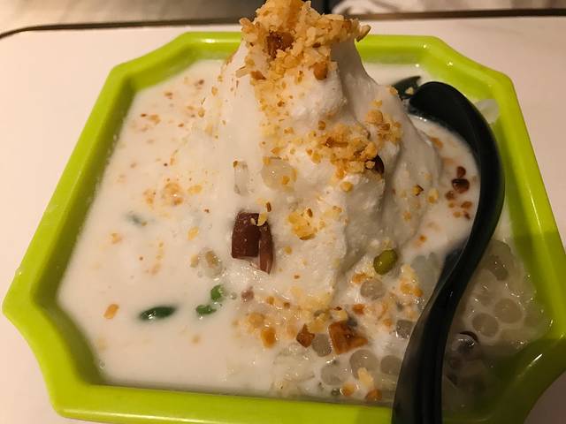 晚上,打卡了酒店里的餐厅,海南有名的美食——嗲嗲的海南椰子鸡,带娃不方便出门远行,最好酒店解决,椰子鸡很美味,清爽的口味也适合小朋友,俩人吃到撑,尤其海南辣椒酱,蘸起来不要太爽!椰子鸡汤还是偏甜口,不太适合重口味的北方人,鸡肉清甜软香,蘸酱吃刚刚好。肥牛也浓浓的奶香味,吃起来很满足。吃完,服务员要好评,我们真心的给了赞!