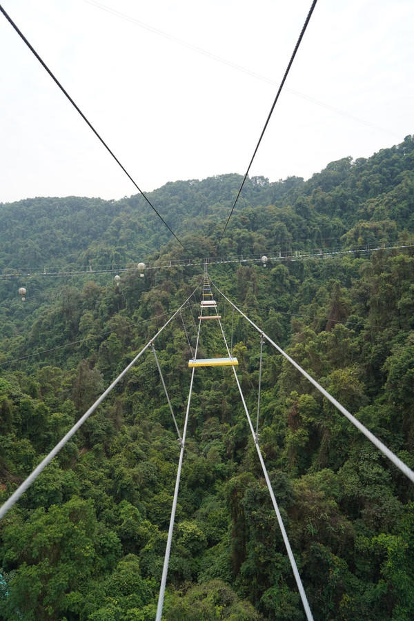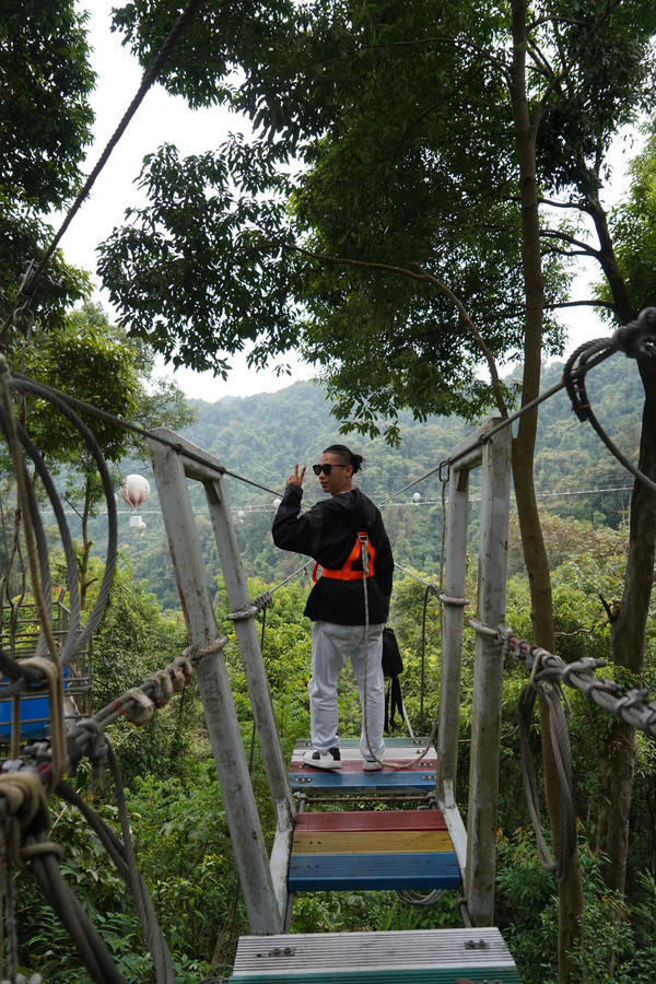 喜欢刺激的小伙伴可以去&空中之城&,七条天梯横跨在森林上空,每一条惊险刺激的指数都不一样,走在天梯上脚下就是万丈深渊,仅靠手上和脚下四根铁锁缓慢前行,真的是太刺激了!除此之外,还有丛林飞鼠、滑道等相对没那么刺激的的项目可以尝试~