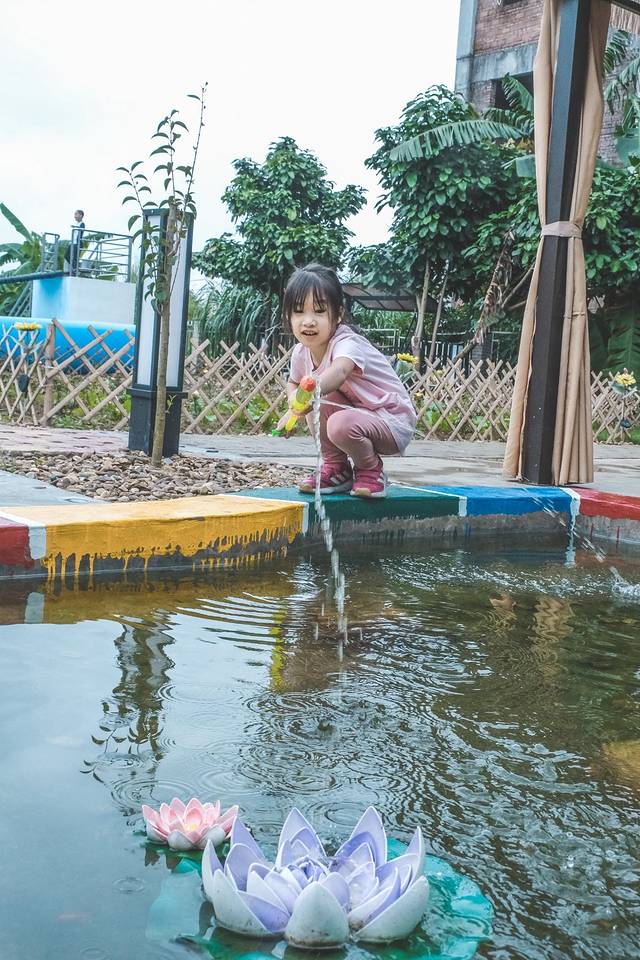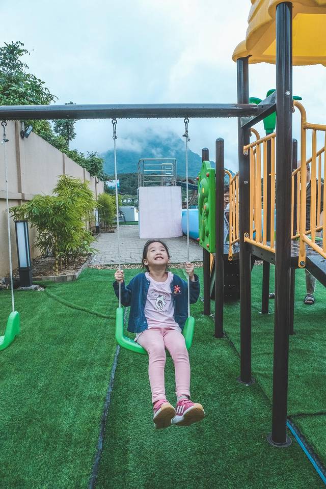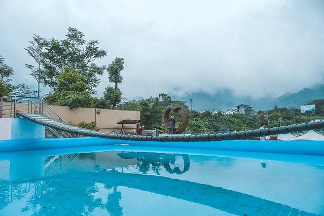 民宿最美的地方是后院,那里有网红的摇摆桥悬挂在泳池上,无论大朋友还是小朋友看到了,都欲欲想试着过桥,但心里又害怕掉进水里。