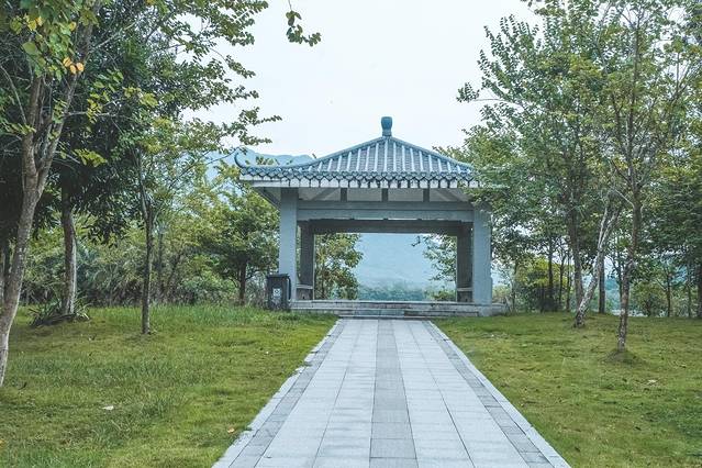 石马龙是新开发的小众旅游地,一条小径延伸至湖中央的凉亭,平静的湖面如镜子般映射,走近湖心便可揽镜自照。