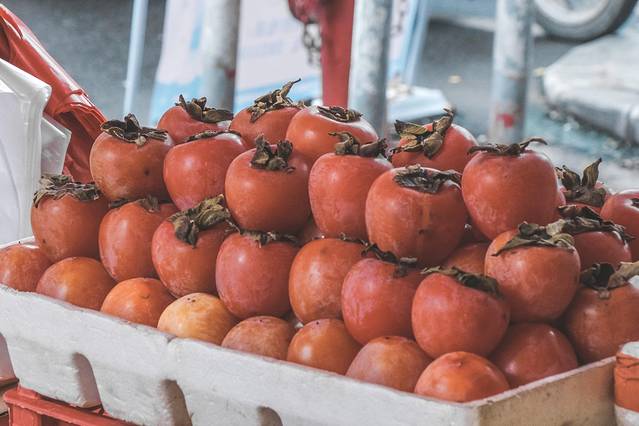 除了肉类蔬菜,还有不少本地的农副产品。现在正是柿子成熟的季节,据闻派潭镇密石村种植红柿有三百多年历史,盛产的红柿质量上乘,远近闻名,多汁、多糖,剥皮也不带肉。柿果的外层披白粉,叫做柿霜,可提炼甘露蜜醇,可缓解喉痛,而且价廉物美,非常值得买点来品尝。