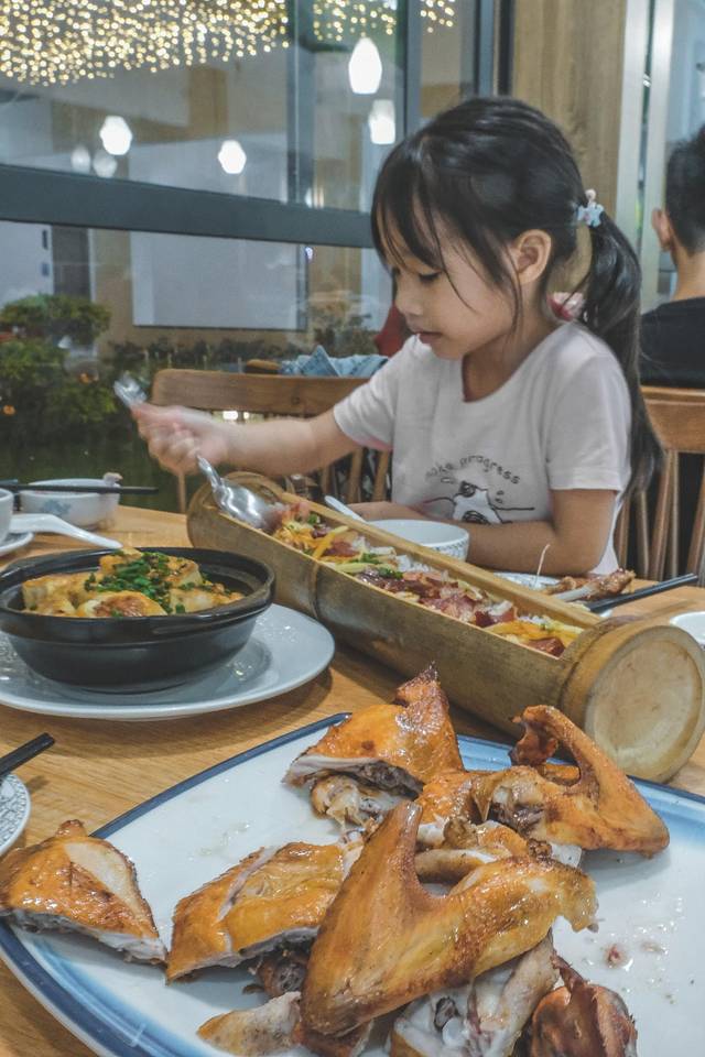 我推荐几个不得不试的菜品给大家,第一就是鸡。无论是窑鸡、烧鸡还是浸鸡,因为都是自家饲养的走地鸡,鸡味十足,肉骨都比较厚实,口感很好。还有盖仔粉和竹筒饭我也喜欢,尤其是腊味的。广东有句话“秋风起,吃腊味”,说的就是这个时节的腊味最应时,油而不腻,甘香回味。