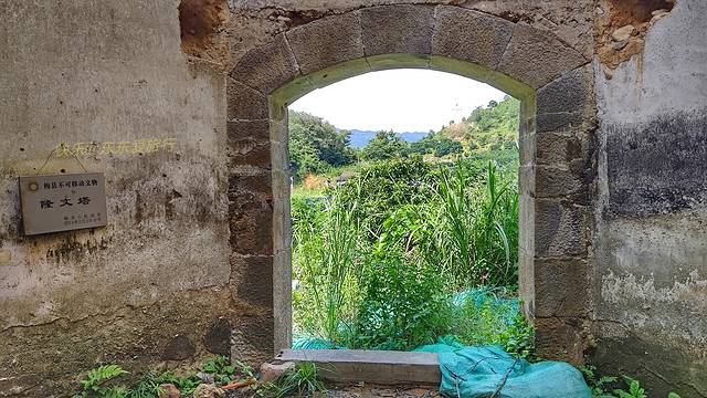 让人气愤的是,连塔门的门框也被人拆走了。站在塔内,感觉随时有危险威胁着我。我粗略看了一遍后,便匆忙离开古塔。站在离塔不远的山坡上,可以看到被四面的青山包绕着的岩前村。如果爬到山顶,则视野更加开阔,据说几乎整个葫芦形的隆文上下村平原都尽收眼底。