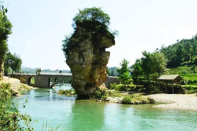 洒金谷景区位于福泉市城郊,是鱼梁江、诸梁江、沙河三道峡谷和三江汇合后形成的麻哈江的总称,得名于诸梁江上游的一座古石拱桥——洒金桥。洒金谷的景点都有一个个美丽的传说,如"牛王投井"、"黑熊抱美女"、"豆腐桥"、"草鞋井"等等。