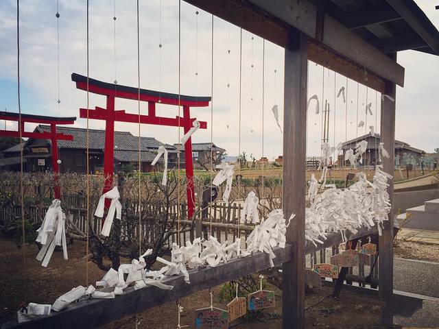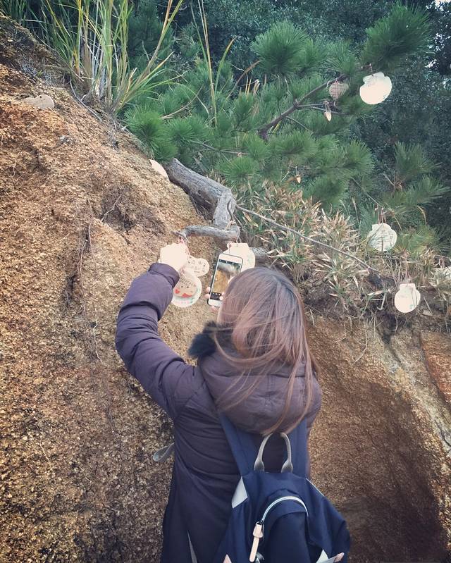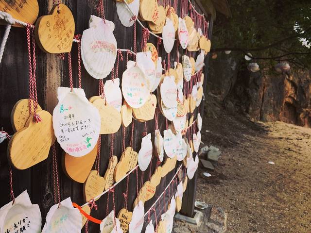路边有悬挂爱心排的地方(虽然我也看到了世界 和平 ,考试顺利之类的单身汪的留言。。。)这些“绘马”牌在酒店的小卖部有卖,可以在来的路上买好带过来写,看到一对情侣来找去年写的牌,蛮感人的捏。
