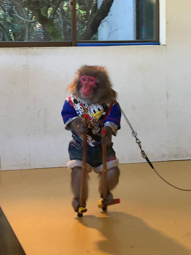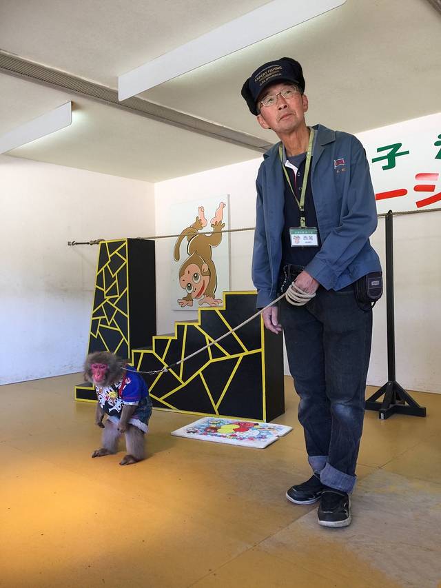 对于我这个动物狂来说,自然是桃子溪的猴子公园最最吸引人,一来到猴子公园,我们跟着人流先去看了猴子表演。猴子这种动物还是很凶的,虽然很聪明地完成了各种表演,但管理人员不停强调不要看猴子的眼睛(最后在他们的笔画中终于明白了这个道理。。。),反正一对上眼它就凶。最后的拍照环节尤其不能和她对眼!!!! 日本 人对动物还是挺好的,不像国内动物表演(其实我个人是非常讨厌动物表演的,背后太心酸残忍)表演的猴子是个妹妹,饲养员一直和她讲道理,喂吃的,表演完就放她出去和其它同类玩了。并且这里的猴子都是放养的!所以没事别去惹猴子,虽然你也无法很近去看(猴子窜的很快的)。