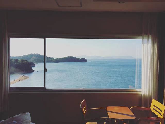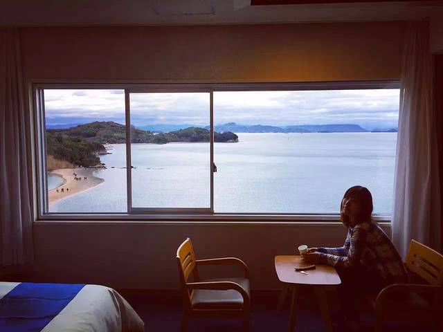 不过说到推荐(虽然我也没住过几家),我还是选就在景点天使的散步道旁边的小豆岛国际ホテル,住这里能欣赏到任何时间段的天使的散步道(因为大多时候,天使之路的游客都很多),而且酒店旁边购物吃饭都很方便,离开码头距离也近,也有班车在码头接送,方便搭乘其他交通工具。