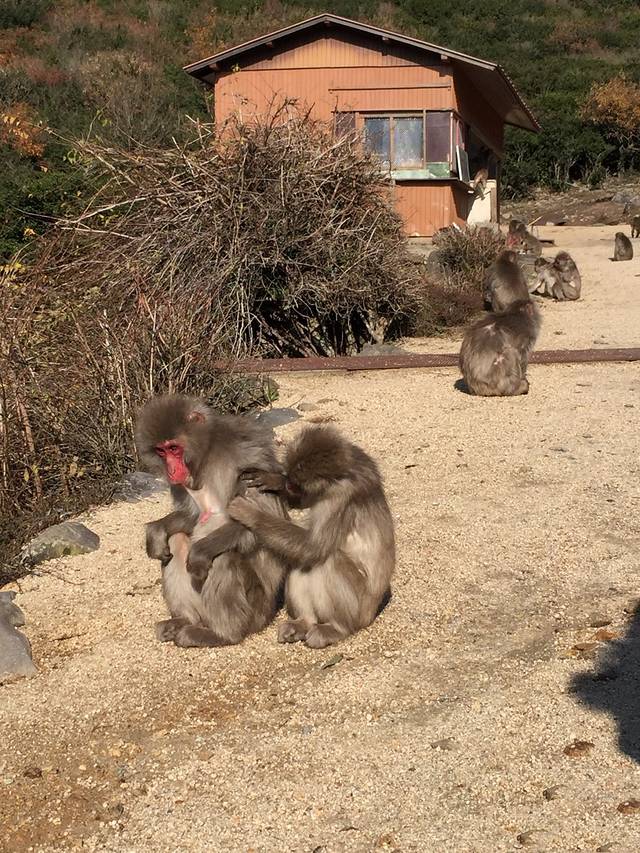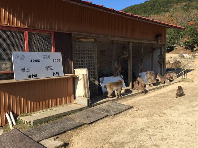 日本 人对于看猴子倒是相当文明的,基本都是蹲下拍拍照,叫几句卡哇伊就散了。一直向前走,就能看到喂猴子的房子,两边的猴子也多了起来,可能因为有吃的,大家都聚集在了这里。